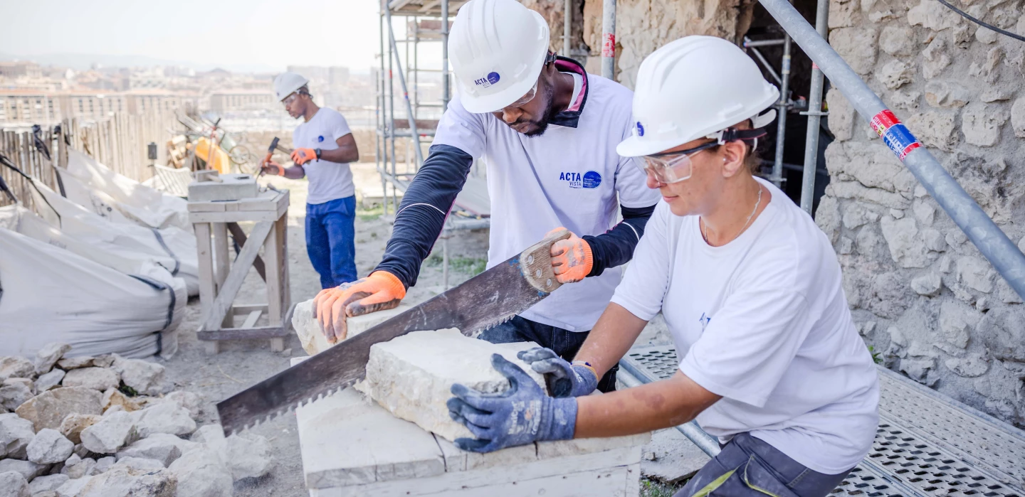 «Réveiller les pierres pour révéler l’humain», telle est la vocation d’Acta Vista. Chaque jour, ses équipes utilisent la restauration du patrimoine historique bâti pour permettre à des personnes éloignées de l’emploi de se remobiliser par le travail et de se former aux métiers du bâti ancien.